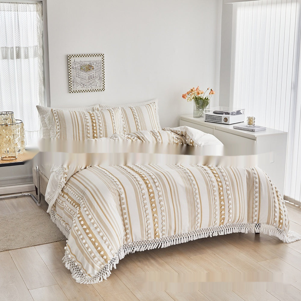 Bedding Craft Solid Color Campus Zaihuile Tassel Dot Three-piece Set